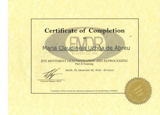 Trabalho com as abordagens TCC (Terapia Cognitivo-comportamental) e EMDR (Dessensibilização e Reprocessamento por Movimentos Oculares)